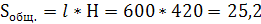 Sобщ.=L*H=420*600 = 25200 м2 = 25,2 га.