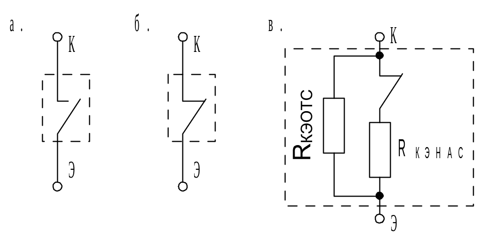 а. – транзистор в состоянии отсечки (ключ разомкнут);