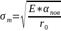 Формула получена из условия что в момент разрушения материала вся энергия упругой деформации накапливается между двумя слоями атомов, переходит в энергию двух новых поверхностей образовавшихся при разрушении материала. В соответствии с выражением прочность твердого тела должна находиться между значениями E/5 и Е/10.