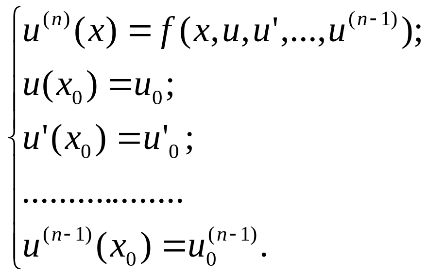 Более общая постановка задачи Коши для дифференциального уравнения n-го порядка:
