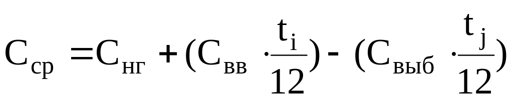 Среднегодовая стоимость основных средств рассчитывается по формуле: