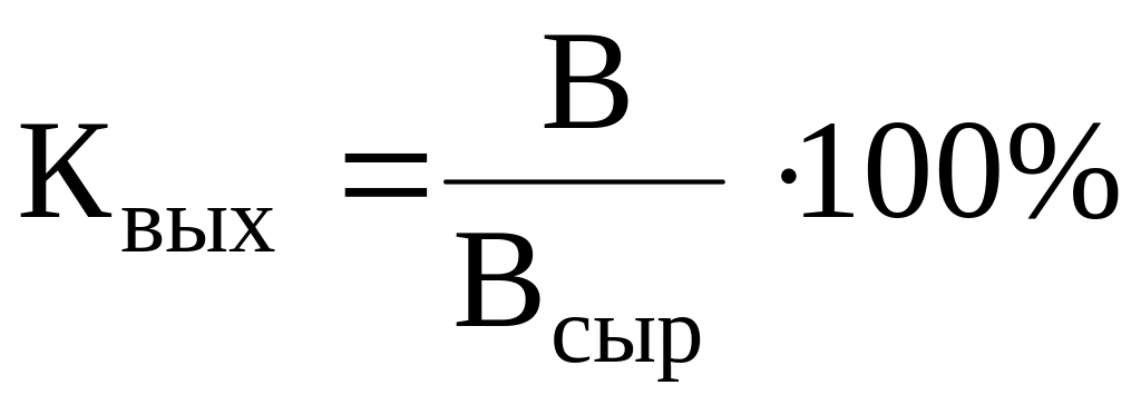 где Квых – коэффициент выхода прод-и (полуфабриката) из исходного сырья;