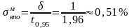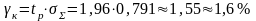Перейдем от с.к.о. к доверительным интервалам. На основании центральной предельной теоремы теории вероятностей, можно считать, что суммарная погрешность имеет нормальное распределение. Тогда доверительные интервалы для доверительной вероятности равной 0,95 примут следующий вид: