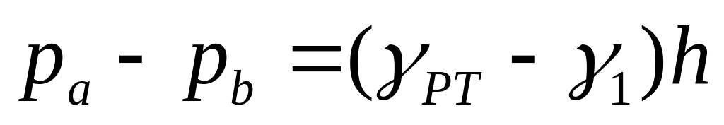 При горизонтальном трубопроводе постоянного диаметра линейные потери напора по длине L между сечениями трубопровода a и b, к которым присоединён дифференциальный манометр, определяются выражением