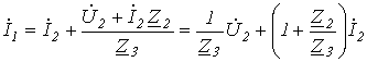 Для определения коэффициентов четырехполюсника для схемы на рис. 3,а с использованием первого и второго законов Кирхгофа выразим и через и :