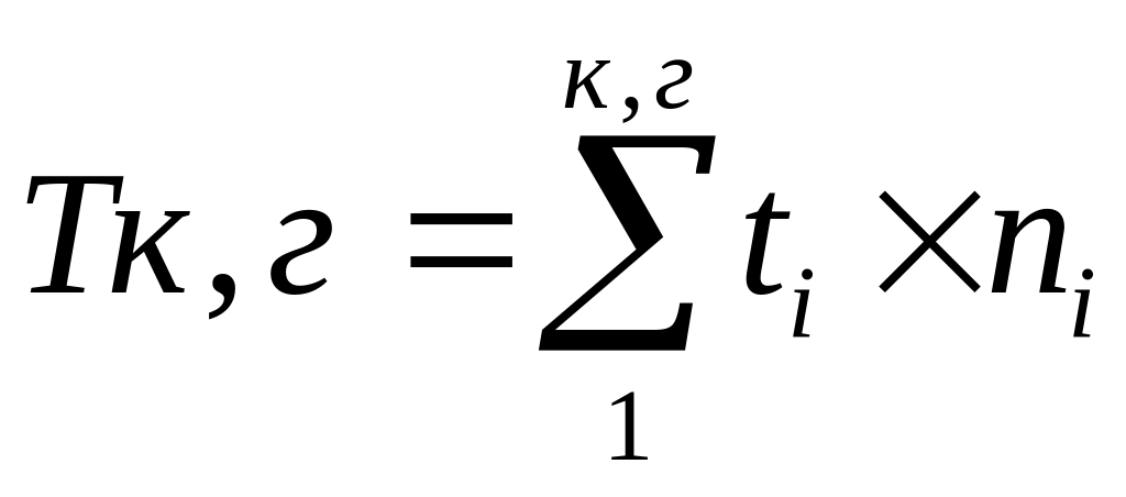 Трудоемкость работ, выполняемых кладовщиками или грузчиками Тк,г исчисляется по формуле: