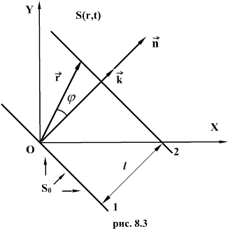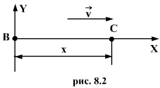 Составим уравнение, которое позволит находить смещение всякой точки волны в любой момент времени. Пусть в точке В рис.8.2 находится источник колебаний. Волны со скоростью v распространяются от источника колебаний вдоль прямой.