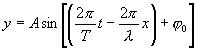 которое называется уравнением плоской одномерной волны и определяет смещение любой точки среды, находящейся на расстоянии х от излучателя в данный момент. Величина