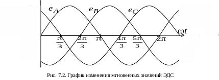 График изменения мгновенных значений ЭДС для этого случая изображен на рис. 7.2.
