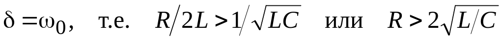 Характер процессов при разряде конденсатора оказывается различным в зависимости от того, будут ли корни характеристического уравнения вещественными или комплексными, что определяется соотношениями между параметрами R, L и C.