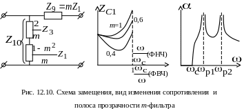При m » 0,5-0,6 сопротивление остается приблизительно постоянным почти во всей полосе прозрачности, резко уменьшаясь только вблизи частоты среза (рис. 12.9).