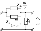 Для увеличения крутизны характеристики = f(w) в начале полосы затухания, для получения заданного значения затухания при определенной частоте и для меньшей зависимости ZС от частоты в полосе прозрачности применяют полузвенья m-фильтров каскадно включаемые с k-фильтрами (рис. 12.6).