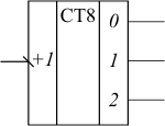 Суть работы счетчика заключается в изменении на единицу зафиксированного в нем значения с приходом каждого счетного сигнала. Счетчики принято подразделять на суммирующие, вычитающие и реверсивные. Суммирующие счетчики увеличивают свое значение, вычитающие – уменьшают, а реверсивные могут работать как на прибавление, так и на вычитание в зависимости от сигналов управления. Параметром, определяющим информационную емкость счетчика, является модуль пересчета, равный числу внутренних состояний. Это значение проставляется на УГО после аббревиатуры CT.