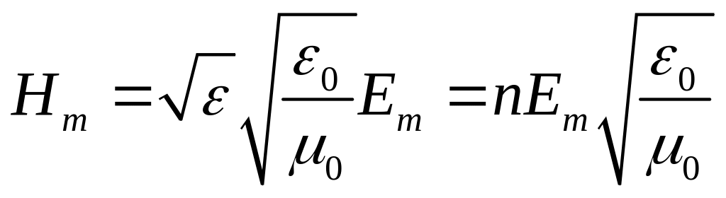 где n – показатель преломления среды, в которой распространяется электромагнитная волна. Таким образом, Нm пропорционально Еm и n: