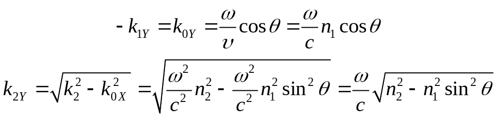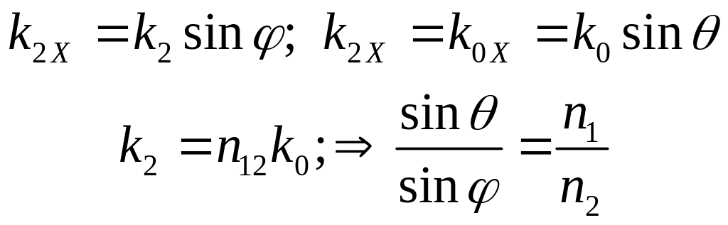 В силу полной однородности системы в плоскости X,Z решения волнового уравнения должны зависеть от координат X и Z одинаково. Это означает, что проекции векторов kX и kZ должны быть равны для всех трех рассматриваемых волн: