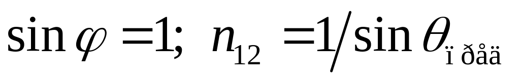 В случае n1>n2 всегда существует угол падения пред, при котором преломленная волна распространяется во второй среде вдоль границы раздела: