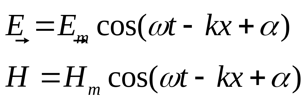 Плоская электромагнитная волна, распространяющаяся вдоль оси х, описывается уравнениями: