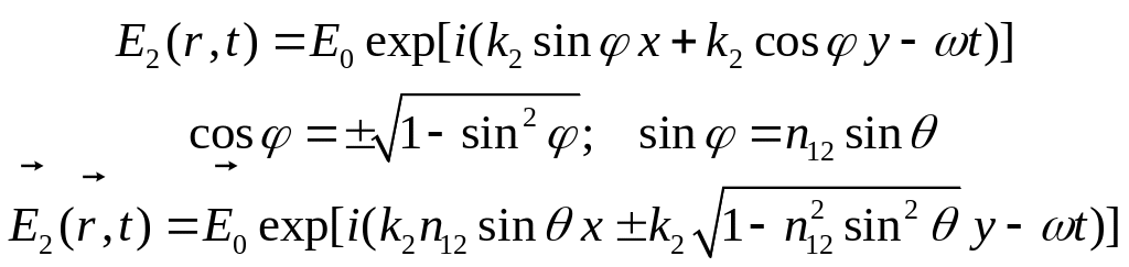 Рассмотрим структуру волны, падающей на границу раздела под углом большем критического, во второй среде:
