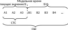 После имитации всех событий из СТС в него переносится очередная совокупность событий из СБС, относящихся к ближайшему моменту модельного времени ti+1, текущее модельное время принимает это значение.