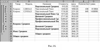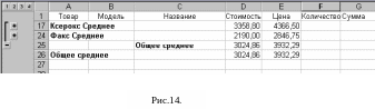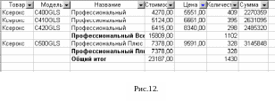выберите команду Данные, Итоги, чтобы подвести итоги для требуемых данных. Результат работы этой команды для разбираемого примера изображен на рис.12.