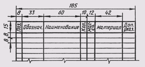 Текстовую часть в виде технических требований и технической характеристики размещают обязательно на первом листе в виде колонки шириной не более 185 мм. При необходимости текст размещают в одну, две и более колонок. При этом вторая и последняя колонки располагаются слева от основной надписи. Между текстовой частью и таблицей составных частей (или основной надписью) нельзя размещать изображения или другие таблицы.