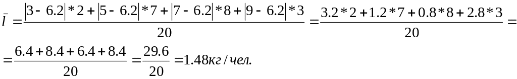 Среднее линейное отклонение рассчитаем по формуле 5.3