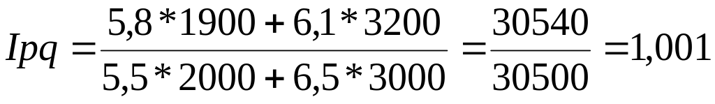 Рассчитаем агрегатный индекс физического объема продукции по формуле: