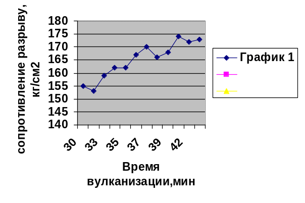 Как видно из данных таблицы, с увеличением времени вулканизации возрастает величина сопротивления резины разрыву. На рис. 9.2 представим график связи.