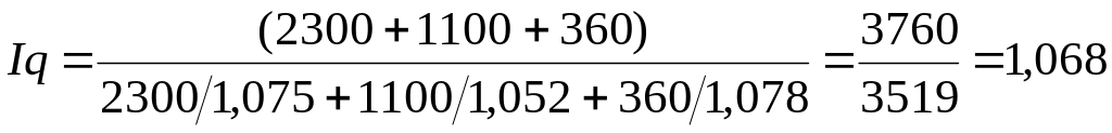 Следовательно, физический объем продукции в целом по предприятию увеличился на 0,7%.