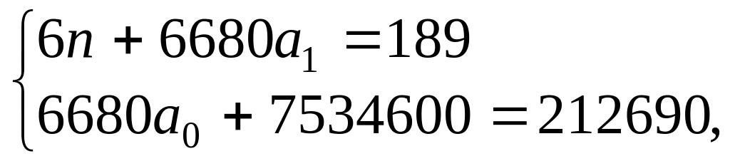 Чтобы найти значения a0 и a1, необходимо решить систему нормальных уравнений: