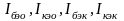 Первый индекс в обозначении указывает электрод, в котором протекает ток; второй индекс – схему включения; третий индекс – условие в оставшейся части схемы («о» - отсутствие тока в др. электроде, то есть холостой ход; «к» - короткое замыкание в оставшейся части схемы).