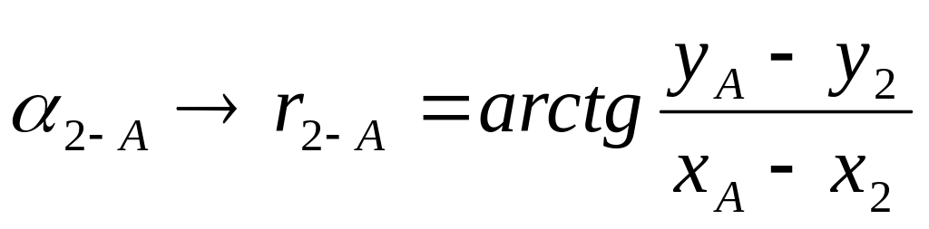 Рис.56. Подготовка исходных данных для выноса оси АВ в натуру способами угловой засечки (точка А) и полярных координат(точка В)