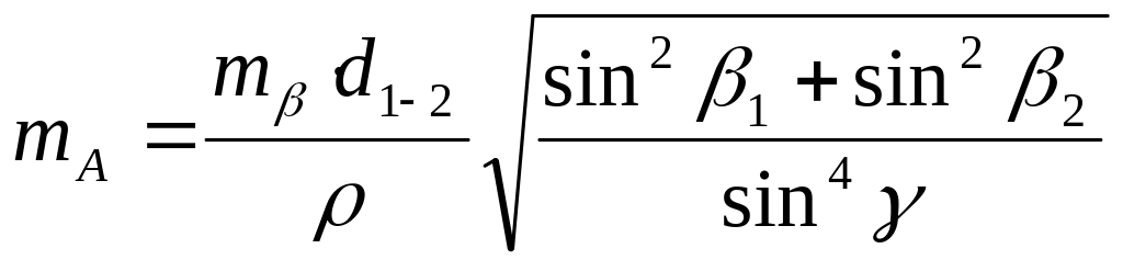 - угол засечки, вычисляемый из треугольника (180 - 1- 2);
