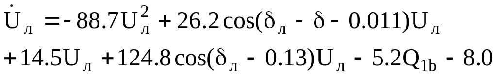 Для анализа возникновения хаотических режимов используется модель ЭЭС при условии пренебрежения декрементом затухания. С учетом принятия численных значений параметров ЭЭС уравнения состояния запишутся в виде