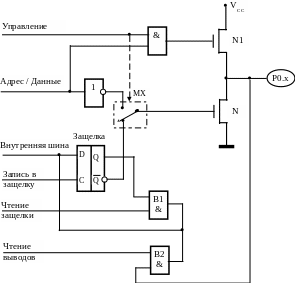 Считывание данных, присутствующих на входах P0, P1 выполняется по фазе S5P1 последнего машинного цикла команды, а со входов P2, P3 - по фазе S5P2.