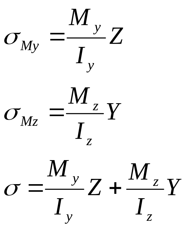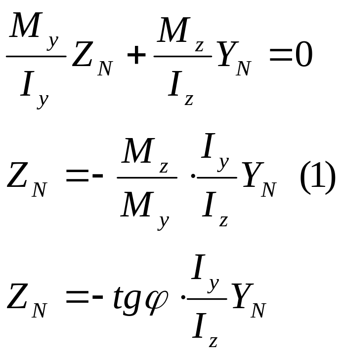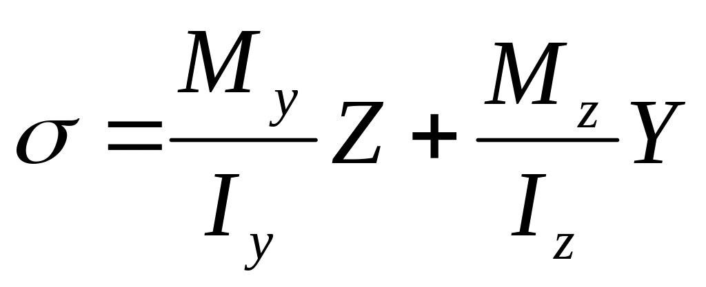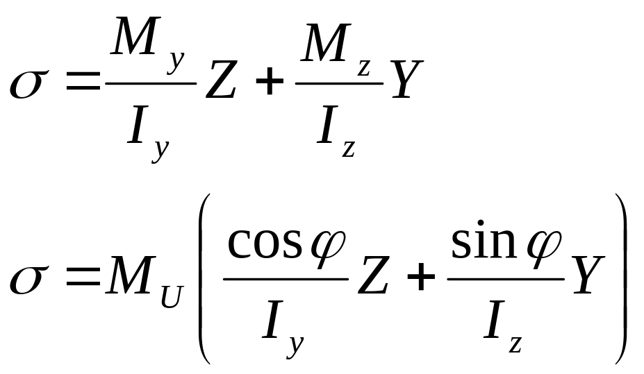 Для определения напряжений при косом изгибе: