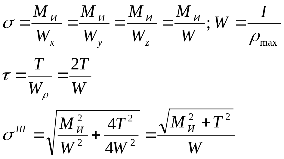 Мы будем пользоваться 3 и 4 теорией прочности.