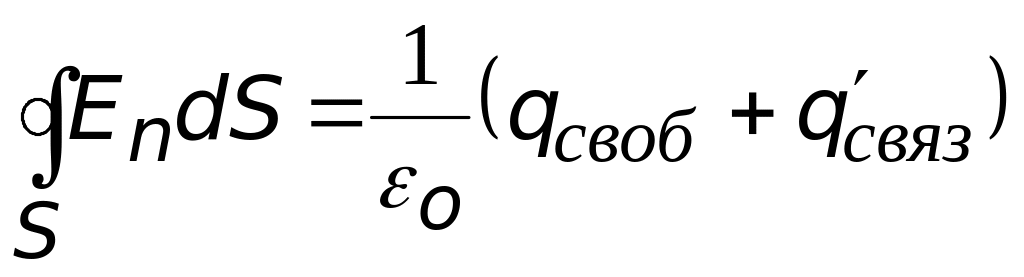 Найти связанный заряд qсвяз можно только в самых простых случаях. Но можно записать теорему Гаусса для вектора электрической индукции D.