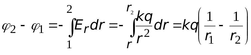 Подставим в формулу в выражение для напряженности поля точечного заряда. 1 и 2 – любые две точки на радиальной оси координат r. Примем 1 = 0 при r1 , заменим 2 , r2 r получим (r).