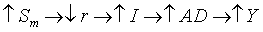 Модель позволяет найти такие сочетания рыночной ставки процента (r) и дохода (Y), при которых одновременно достигается равновесие на товарном и денежном рынках. Поэтому модель IS-LM является конкретизацией модели AD-AS.