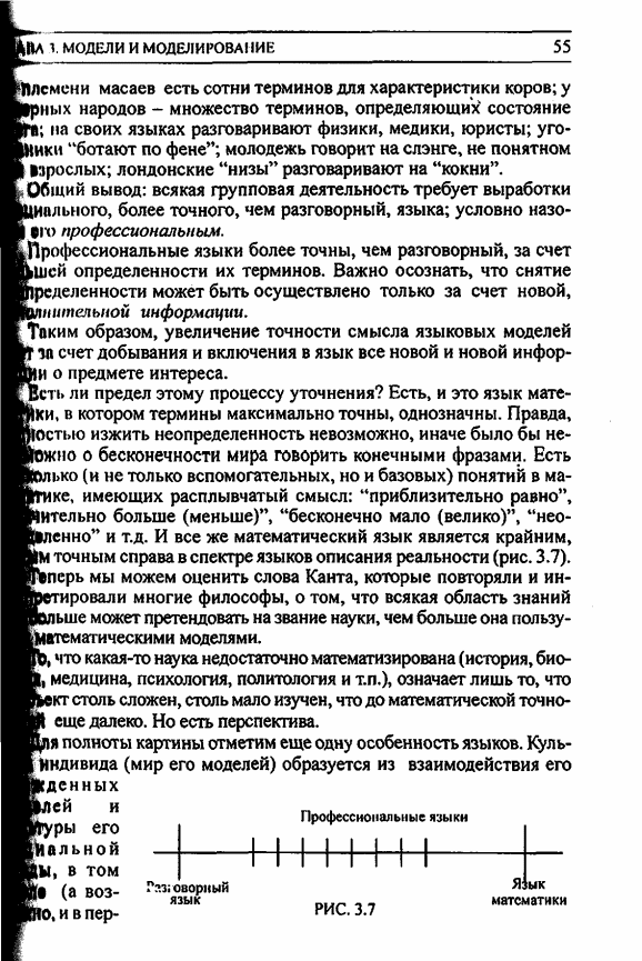 К ним относятся языковые конструкции, т.е. языковые модели. Естественный язык является универсальным средством построения любых абстрактных моделей. Универсальность обеспечивается возможностью введения в язык новых слов, а также возможностью иерархического построения все более развитых языковых моделей. Универсальность языка достигается, кроме прочего, еще и тем, что языковые модели обладают неоднозначностью, точностью, расплывчатостью. Это проявляется уже на уровне слов (многозначность или неопределенность). Плюс многовариантность соединения слов во фразы. Это порождает приблизительность - неотъемлемое свойство языковых моделей.