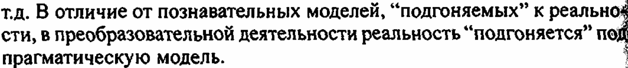 Прагматическая (управляющая) модель является средством управления, средством организации практических действий, способом представления образцово правильных действий или их результата; является рабочим представлением целей. Поэтому использование прагматических моделей состоит в том, чтобы при обнаружении расхождений между моделью и реальностью направить усилия на изменение реальности так, чтобы приблизить реальность к модели.