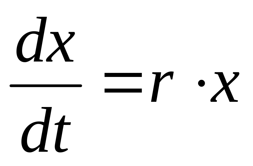 где x – численность (плотность) популяции, t – время, r – мальтузианский параметр, имеющий смысл удельной скорости роста. Размерность мальтузианского параметра – [время-1]. Решением данного уравнения является выражение: