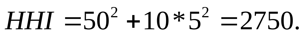 Более точно уровень концентрации позволяет оценить индекс Гирфедаля: сумма долей каждой фирмы в поставках в % возводимых в квадрат.