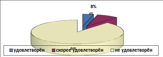 Анализ опроса показал, что на вопрос «Получаете ли Вы стипендию?» 23 человека (43,4%) ответили, что получают обычную стипендию; 5 человек (9,4%) получают социальную стипендию; не получают стипендии 25 человек (47,2%) (Рис.1.). На вопрос «Удовлетворены ли Вы размером получаемой стипендии?» вполне удовлетворен, ответили 2 человека (3,8%), скорее удовлетворен – 4 человек (7,5%), не удовлетворен – 47 человек (88,7%) (Рис.2.).
