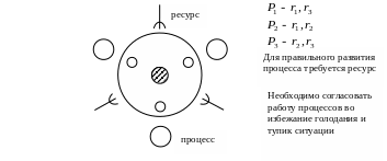 - •Задачи кругового распределения ресурса («обедающие философы»)