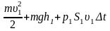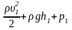 Полные энергии Е1 и Е2 будут складываться из кинетической и потенциальной энергий массы жидкости: