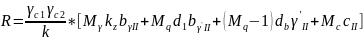 здесь γc1, γc2 − коэффициенты условий работы; k – коэффициент надежности; Mγ, Mq, Mc − безразмерные коэффициенты, зависящие от угла внутреннего трения; γII − удельный вес грунта, расположенного ниже подошвы фундамента; γ ′II − то же, но выше подошвы фундамента шириной b, заглубленного в грунт на величину d1. Величина db