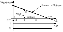 Из этого рисунка видно, что при изменении частоты на одну декаду значение ЛАЧХ изменится на –20 дб. Следовательно, она имеет вид прямой.
