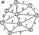 Вопрос 4. На заданной сети [Л.2, стр. 335, №85] указаны пропускные способности ребер. Предполагается, что пропускные способности в обоих направлениях одинаковы. Требуется: 1) сформировать на сети поток максимальной мощности, направленный из истока I в сток S; 2) выписать ребра, образующие на сети разрез минимальной пропускной способности.